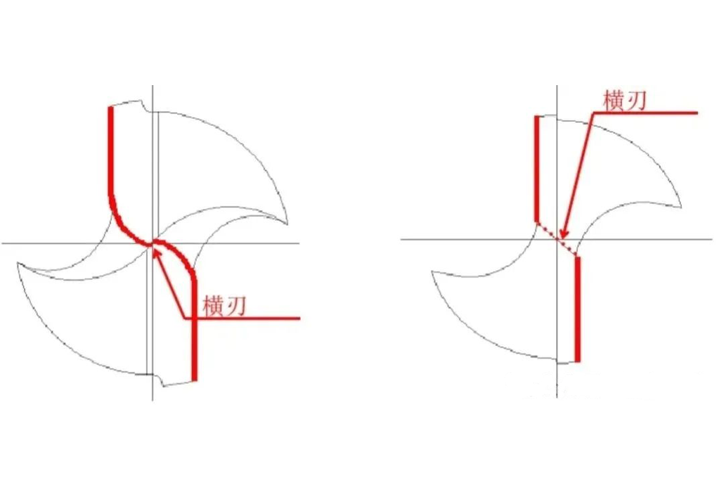 Поперечная кромка представляет собой режущую кромку в центре наконечника спирального сверла без режущей функции, а ее форма похожа на центральную тупую кромку деревообрабатывающей лопаты. Есть две основные проблемы с неполированной поперечной кромкой: во-первых, слишком большая длина, что приводит к значительному увеличению сопротивления подаче во время сверления; Во-вторых, передний угол на поперечной кромке отрицательный, что подвержено сильному трению во время резки, что не только влияет на точность положения отверстия, но и приводит к засорению стружки.