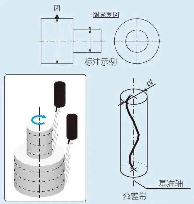 Коаксиальность относится к степени совпадения между измеряемой осью и осью отсчета, а полоса допуска — это значение допуска диаметра цилиндрической поверхности с осью отсчета в качестве оси. В таких сценариях, как роторы двигателей, приводные валы и гидравлические цилиндры, отклонения соосности, превышающие 0,01 мм, могут привести к усилению вибрации, выходу из строя уплотнения или преждевременной потере подшипника.