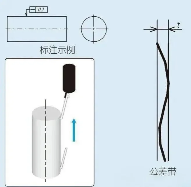 • Прямолинейность в заданном направлении (например, осевая ось деталей вала)